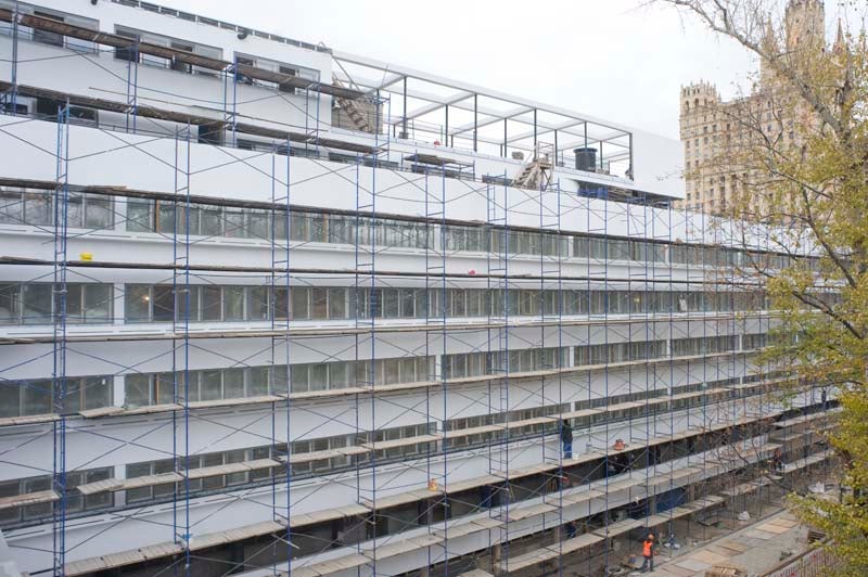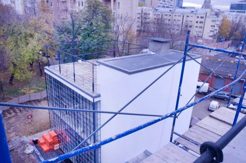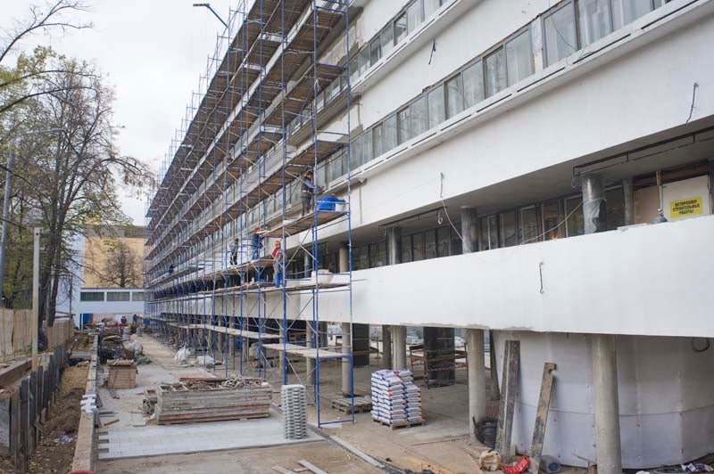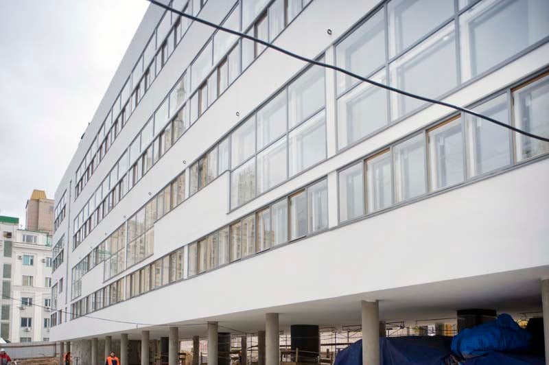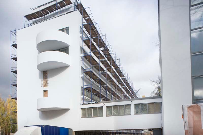 Narkomfin Apartment Building Narkomfin Exterior Main Facade Narkomfin Exterior Back Facade and Roof Terrace Narkomfin Interior Narkomfin Service Wing Narkomfin Service Wing 2